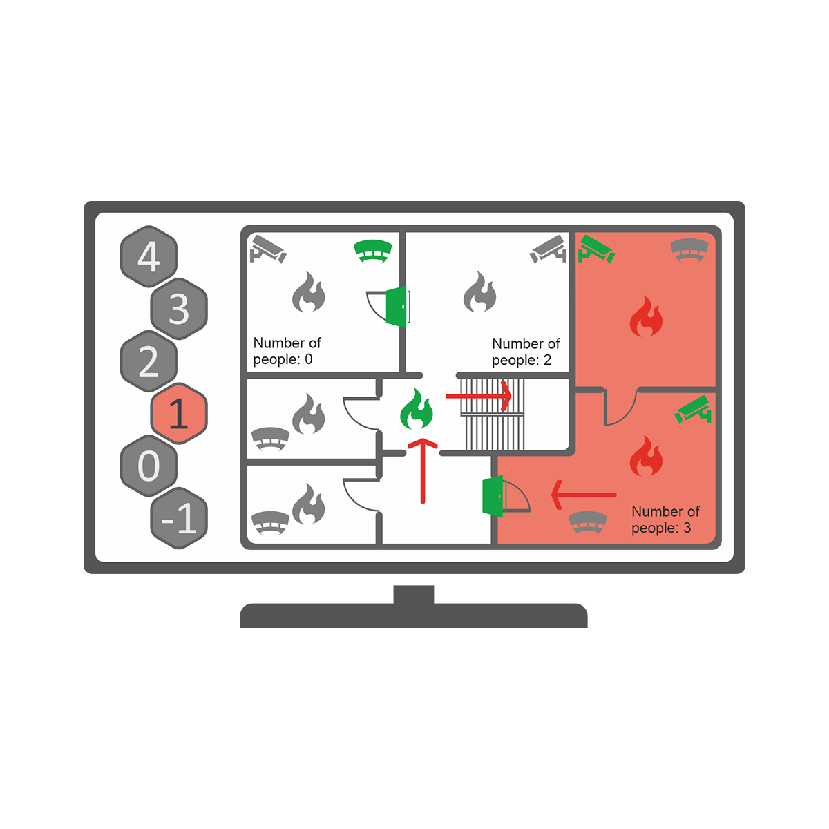 - Monitorowanie przejść i osób w obszarach – Podgląd zdjęć, kart, danych użytkowników oraz liczby osób w strefach; kluczowe przy ewakuacji i scenariuszach automatyki.